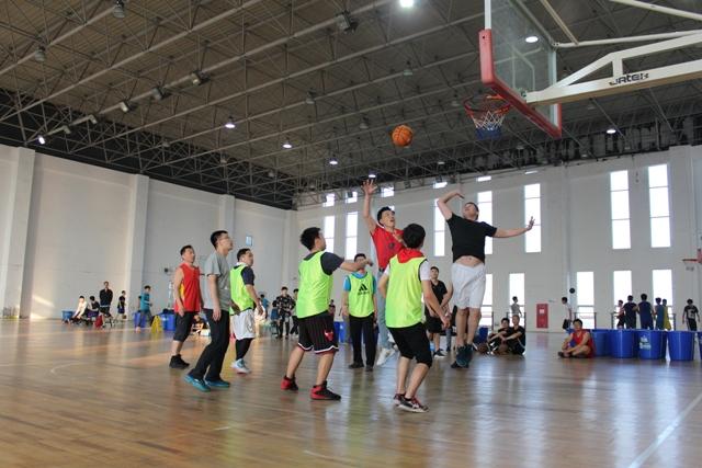 在下半场中,争夺更加激烈,员工队生猛,教师队稳重,双方展现出强劲的实力,场面激烈。观战的教师员工更是一个劲儿地为加油助威。比赛双方你追我赶,互不相让。最终在全场如雷的呐喊助威声中,教师队以67比57的成绩战胜员工队,激烈的比赛在愉快的氛围中结束。