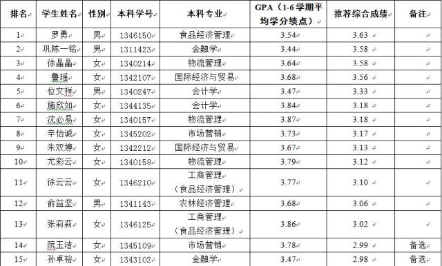 根据《yl23411永利集团推荐优秀应届本科生免试攻读硕士学位研究生工作实施办法》的意见和《yl23411永利集团关于优秀本科毕业生免试攻读硕士研究生的推荐办法》规定,对2013级43位申请人进行综合排名后,最终确定以下13人具备免试攻读硕士研究生资格和2名备选人员,名单如下: