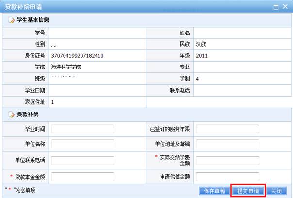 2 将相关信息填写完整后,点击“提交申请”即可。贷款本金金额为在校期间贷款总和。