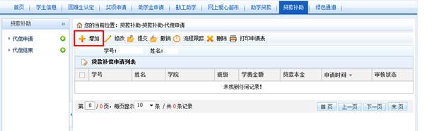 1 登录员工资助管理系统,在“贷款补助”菜单下点击增加按钮;