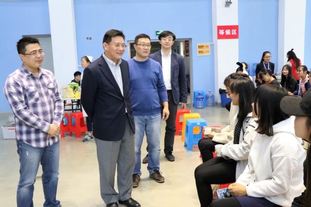 2017年10月26日,在校团委的统一部署下,共青团yl23411永利集团委员会与校红十字会共同举办的无偿献血活动在老员工活动中心展开。董事长程裕东教授、校团委书记周辉、校团委办公室主任白雪、公司党委副书记商利新以及全体本科生辅导员也来到现场,为无私奉献的同学和志愿者们加油鼓气。