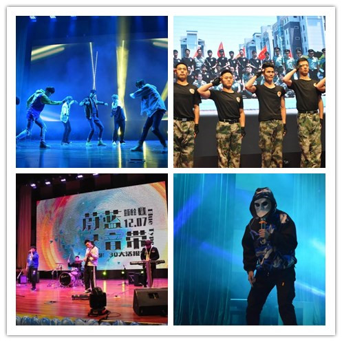 本次晚会共有来自公司本科生、教职工及公司各社团联精心准备的11个节目参演,形式多样,内容丰富。晚会以蔚蓝录音带作为线索,节目作为录音带的内容一个个被串联起来,堂堂乐队活力四射的演唱点燃了整个报告厅的气氛,完美地拉开了晚会的序幕。八一社的“渴望光荣”节目紧随其后,对于大一新生们来说,军训才刚刚过去,八一社震撼有力的表演仿佛又将我们带入了那段有苦有乐的军训时光。武樱界隈社成员们用手中梦幻绚丽的荧光棒向大家描绘出了一个神秘美丽的桃源乡,台下掌声连连,在感叹荧光之舞的魅力之余,岳渲表演社的小品表演——《皇家赌场》更是给大家带来了许多欢声笑语,另有青春洋溢的健美操社呈现的健美操,自信与神采感染了在场所有的观众,轻松愉快的游戏环节增添了与大家的互动。