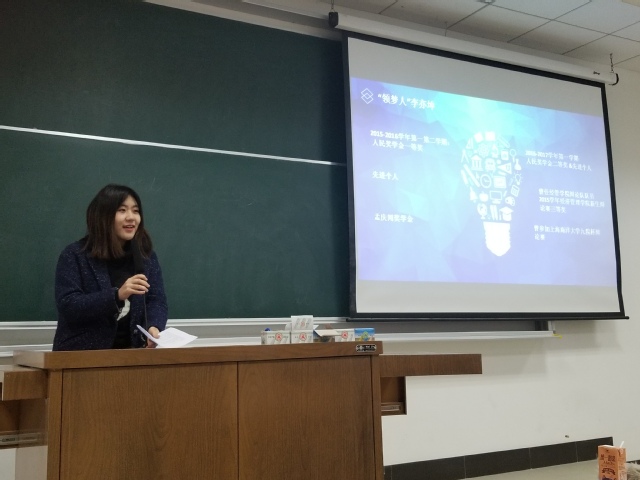 最后出场的是李亦坤和翟义佳学姐,她们讲的是有关辩论的内容。主要从辩论过程和辩论成功要素两个方面进行。翟义佳学姐告诉同学们,辩论的主题有时会是当前的社会热点,所以在辩论的过程中正反和反方之间就要进行智慧的较量,这是综合素质的考量。在辩论过程中要做到阐述清晰、逻辑性强、态度大方和自然得体。这其中最主要的是自信。最后成功的四大要素有:辩风、知识、逻辑语言和心理因素。