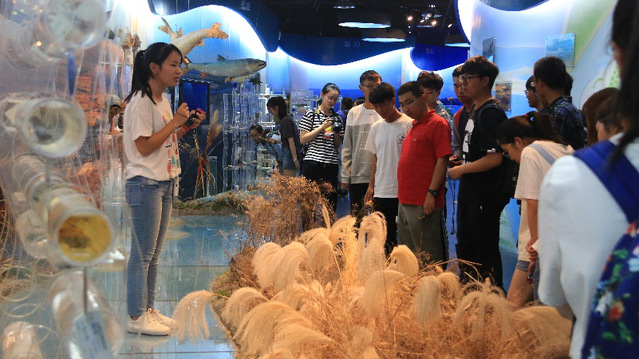 走进海大,走近海洋,建设和谐海洋是中华儿女的美好愿景,海大也在为此不懈努力。2018年9月25日下午,经管公司新生们进入公司水生生物科技馆,一探水生生物的奥秘。水生生物馆是公司保存各类水生生物标本的重要地点,是公司百年深渊探索的积淀与海洋文化传承的魅力所在。它传承着“百年潮,海大梦”的海大精神,鼓舞着一代代拼搏奋进的海**生。在校史宣讲团成员的展示和讲解下,新生们感受海大情怀、传承海大梦想。