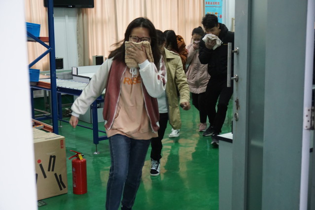 在本次消防应急演练中,陆育东老师向师生讲解了灭火器的正确使用,和一些消防知识;王为杰老师向大家解读了“火场逃生注意事项”。随着郭文龙老师和杨怀宇老师的一声令下,师生从104、306实验室有序、快速地进行了撤离,撤离时间分别是20秒和42秒。