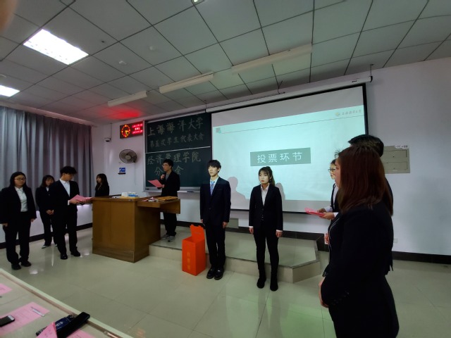下午三点,主持人宣布会议开始。会议应到代表138名,实到代表133名,本次实到代表人数符合规定,选举工作有条不紊地展开,计票期间,公司员工会主席姚思宇上台作第一学期员工会工作报告,回顾和审视过去的工作,她肯定了同学们付出的努力,也指出了在组织思想、内部交接等方面的问题,并提出相应的改进办法。最后她呼吁学代表们承担起责任与义务,连接起员工与公司之间沟通的桥梁。