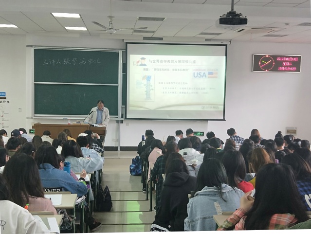 与会的同学们认真听讲,提高了对高等教育改革发展趋势的认识。