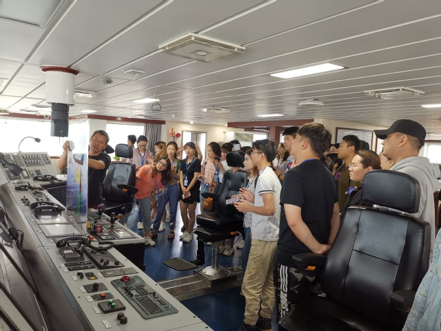 在此次参观活动中,“淞航”号的大副给参观团队作了详细的讲解。通过讲解,同学们了解到船上配备了渔业资源和海洋水文调查两大科考调查系统,中层和底层拖网、金枪鱼延绳钓和灯光鱿鱼钓三种采集海洋生物资源作业方式。同时,船上还配备了海洋生物、水文生化、调查监控、通用实验室和网络信息等五个实验室,可进行远洋深海鱼类生物采样和浮游生物采样、定点或走航式海洋环境参数连续探测、海面常规气象连续探测、海底地形地貌探测,实现调查考察数据系统记录分析和数据集成。同学们认真听取大副的讲解并提出了各自感兴趣的问题,如,“淞航”号资源调查船的船员配置、航行速度、出海经历、避御台风海浪能力、在校生是否能申请上船随同考察等问题,大副始终面带微笑给予详细答复。由于时间的原因,同学们不得不停止提问,在“淞航”号前合影留念,依依不舍乘车返回。