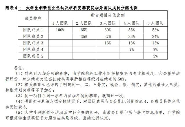 附表4:老员工创新创业活动及学科竞赛获奖加分团队成员分配比例