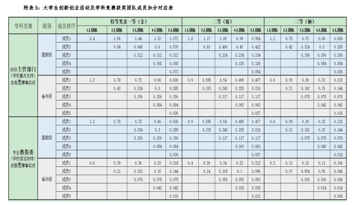 附表5:老员工创新创业活动及学科竞赛获奖团队成员加分对应表