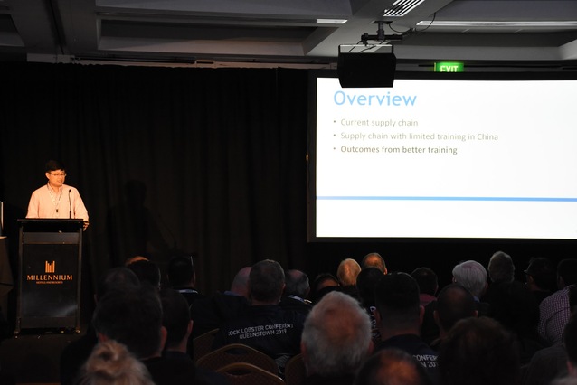 泛塔斯曼湾岩龙虾产业大会两年举办一次,是新西兰、澳大利亚两国岩龙虾产业顶级盛会,超过250名与会者和合作伙伴来自整个大洋洲岩龙虾行业,包括渔民、配额拥有者、渔业管理人员、加工商、商人、研究人员、科学家和政府渔业代表。本次大会一共有21名嘉宾进行主题报告,内容涉及新西兰、澳大利亚南部、西部岩龙虾主产区如南澳州、塔斯马尼亚州、维多利亚州、新南威尔士州等产业发展现状、管理挑战、环境计划、风险管理、贸易流通、人才培养等多个领域。由于会议时间非常紧张,每一个嘉宾演讲后没有太多时间提问,更多的交流环节在Gala酒会上可以进行。