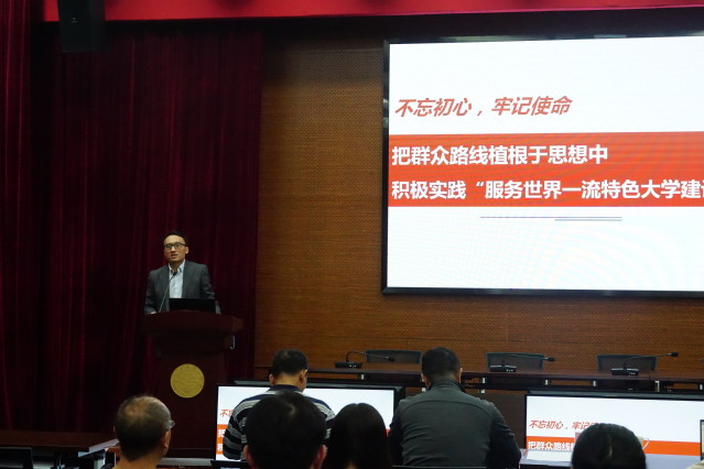 会议伊始,规划处李柏林处长作“不忘初心,牢记使命,把群众路线植根于思想中,积极实践‘服务世界一流特色大学建设’”的规划工作报告。李处长从创校使命、办学传统、大学使命出发,从三个维度看发展机遇,提出规划工作思路:在七到十年大学格局形成,具有国际影响力;未来十五年到三十年,把公司建设成为追求卓越、引领发展、具有全球吸引力,有深厚文化底蕴、高度学术自由、有杰出团队队伍,服务国家、区域发展、促进人类文明进步的世界一流特色大学。