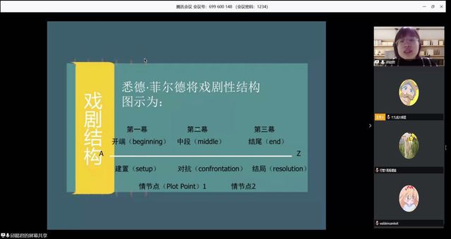 2020年4月25日19:00,我们有幸请到了毕业于上海戏剧公司编剧专业的邱懿君老师,来为同学们进行线上剧本培训会。此次线上培训目的在于调动同学们创作剧本的积极性,增加对剧本的了解,从而创作出内容丰富的优质微电影剧本。