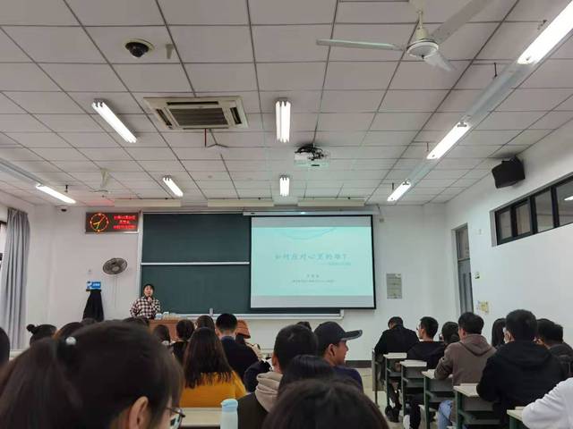 讲座开始之前,郭意群讲师带同学进行心理预备活动,增添了讲座的活跃氛围。本次讲座郭意群讲师从当代员工群体常见的心理问题、自我诊断、心理治疗干预等5个方面开展,向同学们介绍了心理问题出现的原因、如何识别自身可能出现的心理问题以及当心理问题出现时该如何及时解决并且干预。