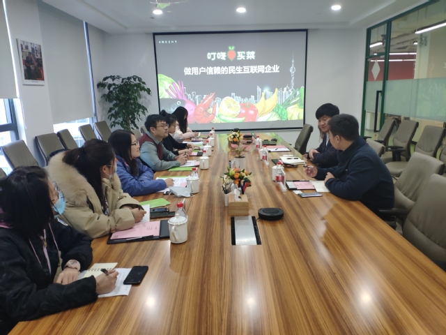 本次调研的主要目的是了解当前生鲜农产品线上零售情况。李玉峰副经理首先向叮咚买菜简单介绍了此次调研的目的与内容,之后叮咚买菜政府事务经理陈茁简单介绍了叮咚买菜的发展历程,政府事务副总裁崔巍和政府事务副总监张鹏分别从线上销售、食品安全、市场定价、物流配送等方面详细介绍了叮咚买菜的运营管理方面的内容。最后,双方就叮咚买菜未来发展计划以及政策诉求等方面进行了充分交流。
