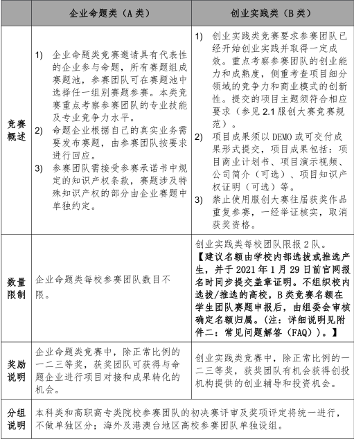 大赛分为A、B两个竞赛类型。具体见下图。A类竞赛题目详见官网发布。