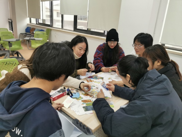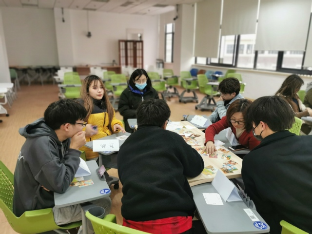 活动开始是热身活动,王婷老师让老师和同学们按照出生月份进行排列,用相互捶背揉肩的“破冰形式”拉近大家彼此的距离。在接下来的小组活动中,大家分为两组,围桌而坐,卡牌体验活动正式开始。在王婷老师的带领下,首先进行第一轮抽卡,每人抽取一张卡牌,结合自身经历对卡牌图文进行表达、分享和交流,并说出自己的三个优点,接着第二轮选卡中,每人再次选取三张卡牌,而这一次则是讲述自身的三个缺点。几个环节交流下来,大家对自己有了更多的发现和了解。