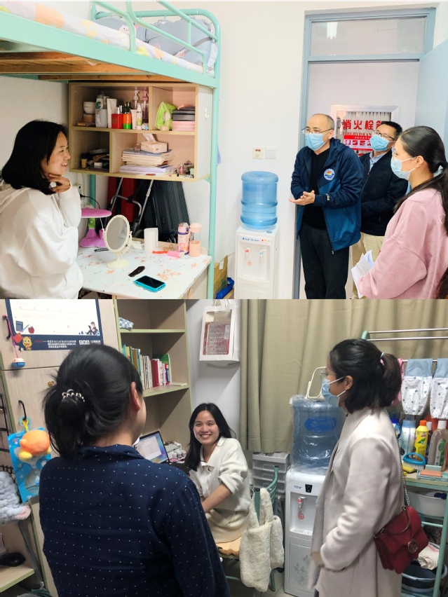 3月13日12点起,公司正式启动校园准封闭管理。为充分了解员工在校情况,公司党委书记罗汝坤、经理杨正勇、留校专任教师、辅导员分别走进员工宿舍,关心关爱同学们的防疫、生活物资、心理状况。罗汝坤嘱托同学们落实“三件套”“五还要”,在严格落实疫情防控工作的同时,注意劳逸结合,加强体质锻炼,勇担责任与使命。杨正勇亲切询问研究生在线教学进展,提醒同学们加强与研究生导师的联系,保质保量推进科研学习。