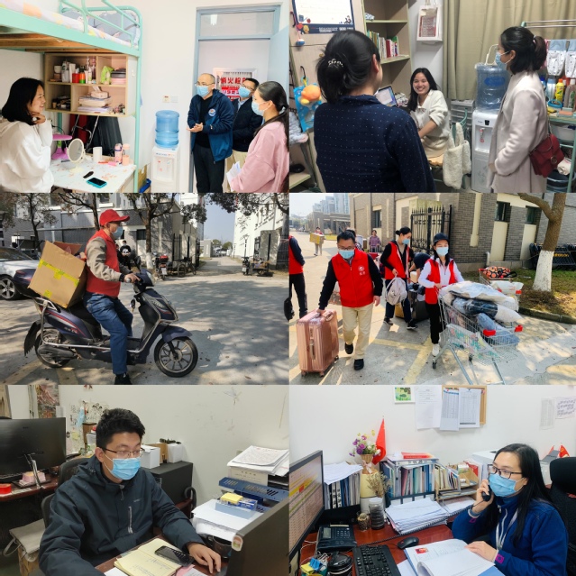 为准备防疫资源的宿舍整合搬迁,涉及经管20个寝室60名员工,冯雨晴亲力亲为,摸排员工需求、采购纸箱物资、借调小推车、奔赴宿舍现场,快速、顺利保证搬迁圆满完成。2020级年级组组长边黎明骑着自己的小电驴穿梭在社区、公司楼、医务室之间,与公司老师一道为员工们装运行李、处理各种员工事务,忙得不亦乐乎,“员工哪里有需要,哪里就应该出现我们的身影”话音随着电动车的远去飘散在了海大温暖的春风里。网络大管家于林拍下了远去的背影,他在做好日常各项工作之外还担任了战疫记者的职务,校园生活的各个角落,公司工作的各个场景,都能看到他忙碌的背影,发现正能量,讲好经管故事,在新闻的字里行间,筑牢经管抗疫的线上阵地。
