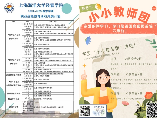 “怎么样?最近线上实习影响大不大?有需要老师帮助的地方吗?”“公司将于3月底举办2022届毕业生春季综合类网络招聘会,大家可以进一步润色自己的简历,增加就业竞争力。”负责毕业班的辅导员蔡晓芬、韩照坤一手拿着毕业生登记表,一边跟员工打着电话,及时了解每一位毕业生的就业现状,并给予针对性的就业指导。疫情以来,就业不停歇,就业指导老师赵玲蓉迅速组织经心就业工作室应势制作《经管人就业与职业指导手册》,涵盖简历指导、经验分享、求职指导、专业认识、职业认知、榜样引领六个板块的内容,全方位帮助毕业生尽快融入职场,引导在校生尽早明确职业方向。在宿舍走访中,了解到部分同学在线学习效果受影响,高数课程学习难度增大,学习发展中心指导老师汪静联合各年级组组长策划成立“学发·小小教师团”,自发在云端进行答疑辅导,发挥朋辈引领作用,全方位促进学业能级提质增效。