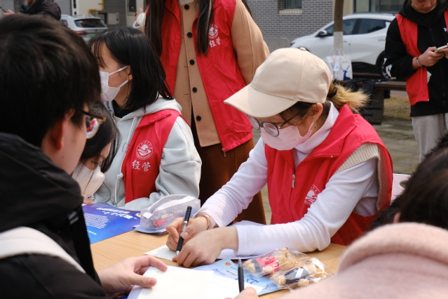 为帮助大家尽快掌握所学知识,同学们现场参与金融防诈知识答题竞赛,并在留言板上留下学习心得,营造积极向上、互助互爱的校园气氛,传递青春正能量!在活动现场,志愿者们分发反诈宣传单,协助问答,布置场地等,展现出了乐于奉献的精神品质,传承奉献实干担当精神,生动诠释着雷锋精神的时代内涵。