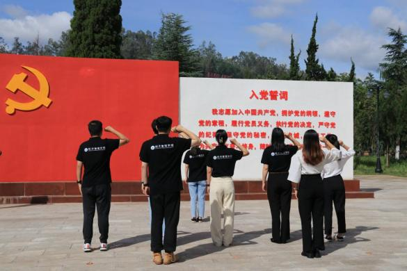 “我为什么要入党?”是建党以来,每个对党心生向往之人的内心之问。在牟定县党建文化主题公园,公司实践团与共青团牟定县委党支部共话党建,在初心亭下回望初心使命,再度描摹心中的红色印记,在初心路上寻找那镌刻于共产党人血脉之中的答案。团队还与云南大学实践队不期而遇,“你们也在这里开展实践学习吗?”两队成员几乎是同时向对方问出这句话,之后相视而笑,而答案似乎也不言自明,“一片丹心向党,这样的青春才不迷茫”,在热情的讨论声中,两队成员更加坚定了紧跟党走的初心。