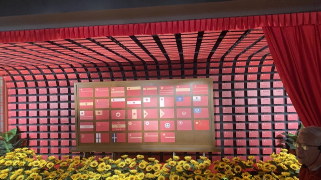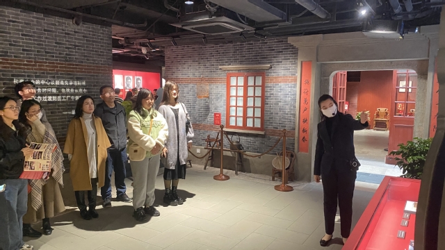 在结束中共四大纪念馆参观后,党员们来到了国旗教育展示厅。这是我国第一个涵盖国旗、国歌、国徽教育的展示厅。国旗、国歌、国徽的诞生都与上海这座城市有着不解之缘。电影《风云儿女》的主题曲《义勇军进行曲》在上海诞生,这首歌曲后来成为中华人民共和国国歌;1949年,上海市民曾联松给北京寄去了自己的国旗设计方案,在此方案基础上形成了新中国的国旗——五星红旗;1950年,中华人民共和国金属国徽在上海制作完成……从国旗、国歌、国徽的故事,感受红色文化、传承红色基因。