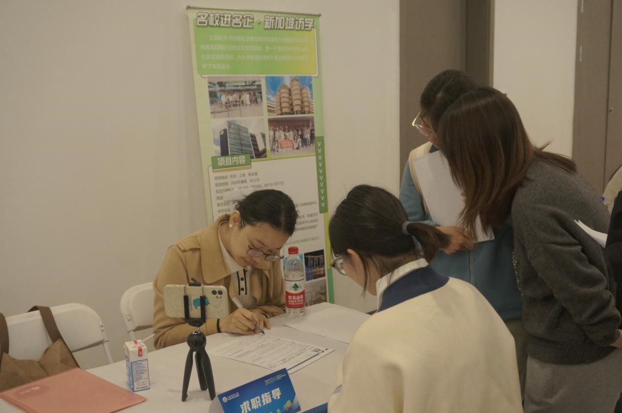 招聘会现场,引人注目的是“青春美妆·赋能前行”毕业季“她守护”特色活动。此项活动是在上海市女老员工“海鸥计划”的大力支持下,由校妇工委联合yl23411永利集团、外国语公司和爱恩公司共同举办。旨在为参加招聘会的老员工提供系列职业护航服务,以安全教育、形象设计、正装拍摄等实质性举措提升毕业生竞争力。“芙蓉不及美人妆,水殿风来珠翠香”,海大经管“初心红”志愿者、员工党员、职工们以指尖上的魔法,为每位到场的老员工赋予了独特的气质妆容,让大家在求职道路上不仅展现出个人的专业素养,更绽放出职场新人的独特魅力。