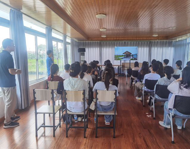 实地研学环节,农林经济管理专业副教授张振宇带领员工走出校园,先后赴上海浦东微谷直播基地和上海沐雨农庄参观学习。在直播基地,经理温迪和基地带教老师为同学们介绍了直播流程和要点,多名同学即兴发挥进行现场模拟直播展示,临场表现获得一致认可。在田间课堂,上海沐雨农庄稻鱼共生基地负责人沈竑详细讲解了“生态共生”理念,以稻鳖共生模式和林下跑道鱼为例,分享了企业发展生态农业的经验及面临的挑战。同学们实地参观了水稻+小龙虾、甲鱼、黄鳝等共生模式,还品尝了有机稻米、农庄自产蔬菜等绿色农产品。