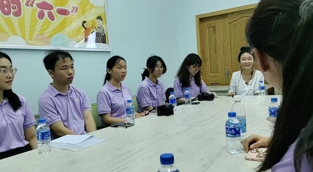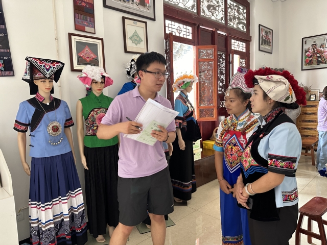 参观结束后,实践团与红河州博物馆研究部的两位老师进行了座谈,从数字化博物馆的可行性和博物馆数字化的看法和做法、IP联名技术和VR技术在博物馆的运用情况,以及红河州非物质文化遗产保护中民族服饰文化的开发利用、建水紫陶和个旧锡器产业的现状与传承发展等问题进行了深入的交流和探讨。实践队在交流访谈中更深刻地认识少数民族服饰,解决疑惑并提出意见与看法,希望为红河州传统服饰文化的传承与发展注入活水源泉,致力推动当地文化产业发展,亦为非遗文化的传承与发展提供创新性方案与范例,在交流互鉴中促进传统文化焕发新生机。