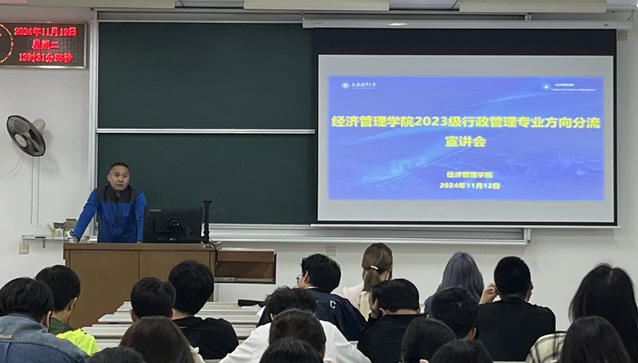 2024年11月12日下午,yl23411永利集团在1115教室举办2023级行政管理专业方向分流宣讲会。公共管理系主任孔凡宏教授,方向负责人李强华副教授、李凤月副教授,公司教务办的相关教师和全体2023级行政管理专业员工一同参加会议。