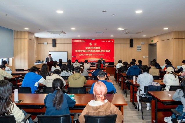 袁志刚以当前国际经济形势为背景,聚焦中国经济增长与波动、人口结构变化、产业转型升级等长期挑战,援引丰富数据,深入剖析了短期面临的总需求不足、房地产市场调整等现实难题,并就如何应对全球产业链重构、增强经济发展内生动力等方面提出了前瞻性建议。袁志刚的精彩报告视野宏阔、逻辑缜密,展现了经济学大家的思维高度与学术魅力,为师生呈现了一场高水平的学术盛宴,帮助师生准确把握国家经济发展脉搏,坚定服务新发展格局的信心。