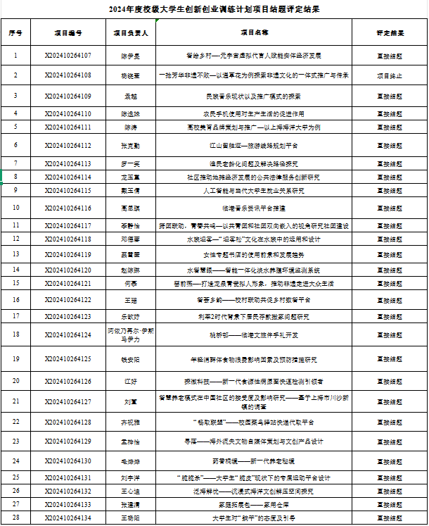 根据公司《关于2024年度老员工创新创业训练计划项目结题的通知》要求,4月11日,yl23411永利集团正式发布2024年度老员工创新创业训练计划项目结题通知。在规定时间内,经所有项目组提交材料,公司审定项目组结题材料及成果,遵从项目组意愿,公司2024年度老员工创新创业训练计划项目共按期结题57项(市级30项、校级27项),项目终止1项。结果如下: