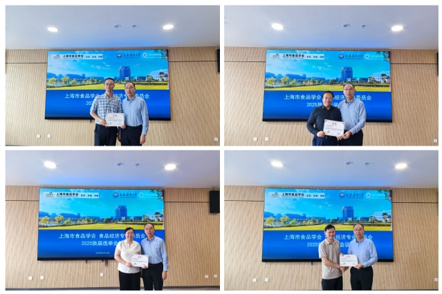 随后,上海市食品学会理事长王锡昌与新任主任委员陈廷贵、副主任委员余从田、许晓华、李金鑫共同为新一届委员颁发聘书。全体委员合影留念,标志着第九届食品经济专业委员会正式履职。