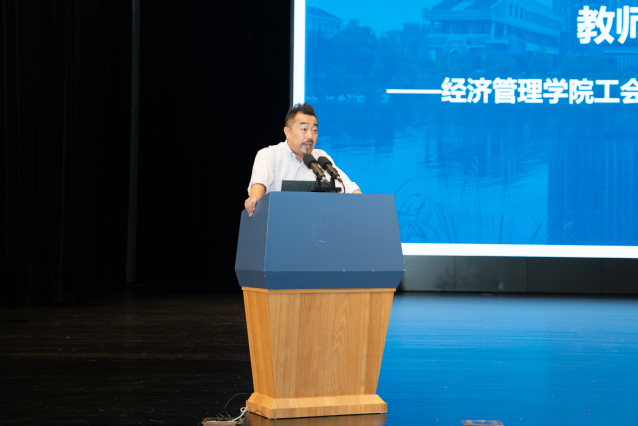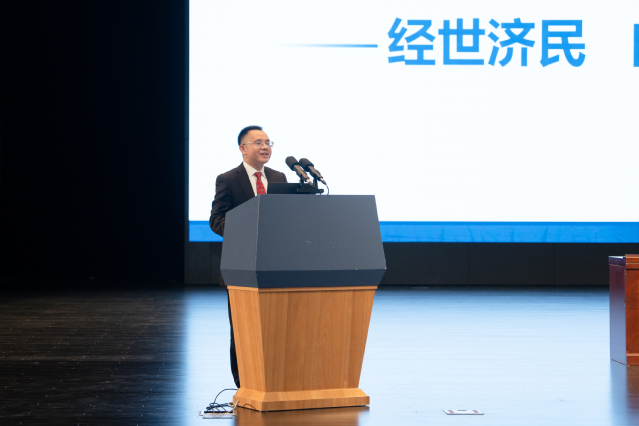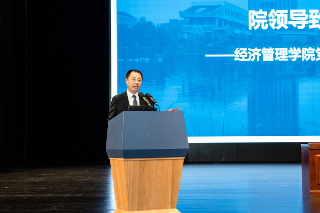 工商管理系刘坤作为教师代表从“清醒、扎实、限量”三个方面分享了他作为教师的感悟。他认为大学是更自由也是更自律的阶段,新生们要学会独立思考,无论未来走向如何,都要记住学过的知识,要有自己对知识的理解、对问题的判断,对资源的整合,这份扎实是行动的底气。他表示每个人都是独一无二的,不要盲目跟风,要坚持自我,找到一条适合自己的道路。老员工活是一场允许试错、鼓励探索的旅程,他祝愿新生们在大学四年里不止学会知识,更学会学习,不止结交朋友,更学会合作,不止追逐热点,更学会思考,在海大学得扎实,玩得开心,活得明白。