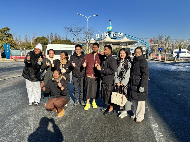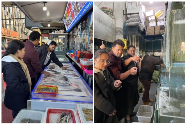 市场方代表赵俊老师热情接待并全程讲解。代表团深入市场内部,现场观摩了中国大型水产品交易市场的现代化运作模式。调研重点关注主要水产品种、产地来源、价格形成机制、日交易规模、冷链仓储体系、物流配送网络及信息化管理等核心环节。琳琅满目的海产品与高效有序的运营场景,令汤加代表频频驻足,兴趣浓厚;三位职工也将课堂理论与产业实践紧密联系,深感获益匪浅。此次调研为汤加方面提供了宝贵的一手行业资料,使其对中国水产品市场的规模、效率与管理水平有了直观而深刻的认识。