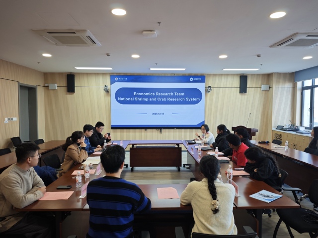 在专题分享环节,来自国家海水鱼、特色淡水鱼及虾蟹三大产业技术体系产业经济研究室的沈欣教授、张海清副教授和郝志鹏博士,分别就中国渔业产业体系的发展格局、政策支持、市场趋势及前沿研究成果进行了系统阐述。自由讨论阶段,双方围绕渔业资源管理、养殖技术推广、水产品国际贸易、气候变化对渔业影响等议题进行深入交流。